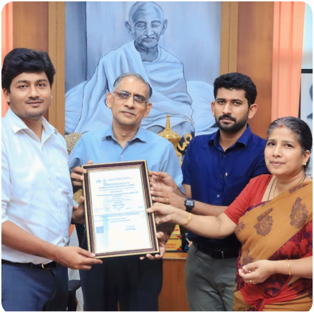 The Puthukad Chembakassery Diagnostic Center has achieved NABL accreditation, and District Collector Krishna Theja IAS presented this accreditation to Benny Thomas Chembakassery, Bonny Thomas Chembakassery, and Mareena Benny.